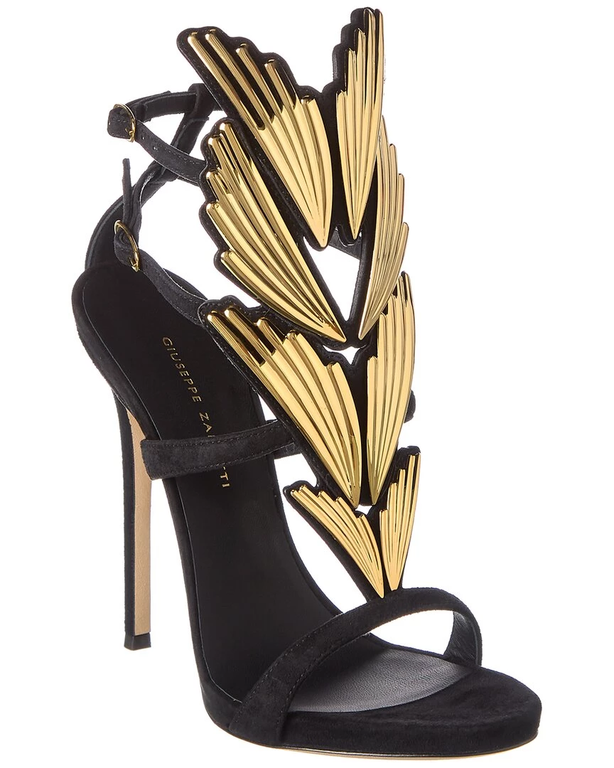 - Alien 115 Suede Sandal In Black Suede And Gold-Tone Hardware With Strappy Design