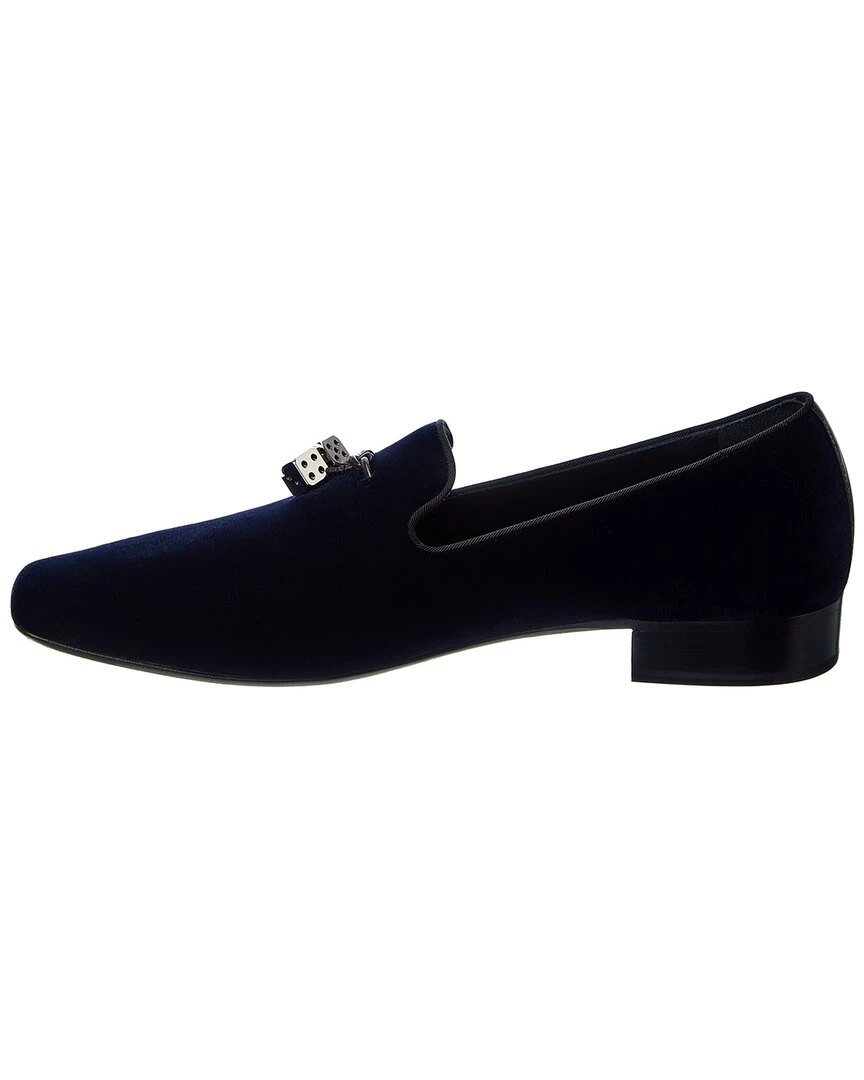 - Anewman Velvet Loafer In Black Velvet And Silver-Tone Hardware With Logo Dice Charms And Grosgrain Trim
