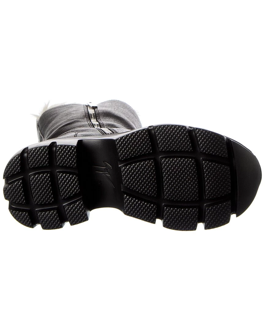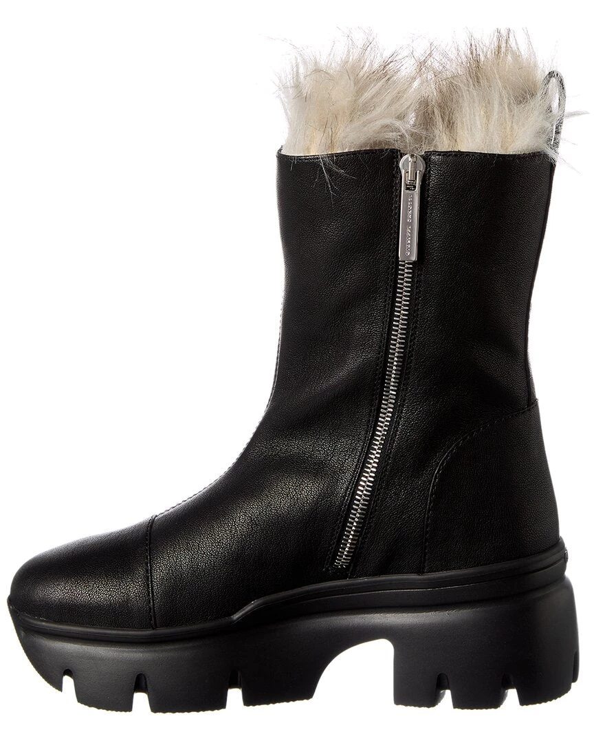 - Apocalypse 20 Leather Bootie In Black Leather And Silver-Tone Hardware With Fur Trim