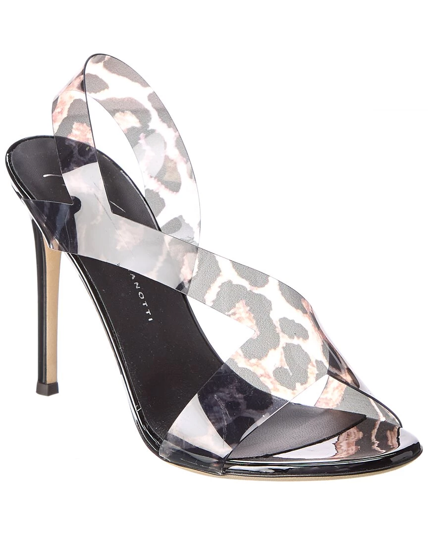 - Basic 105 Vinyl Sandal In Black Leopard Printed Transparent Vinyl With Strappy Design