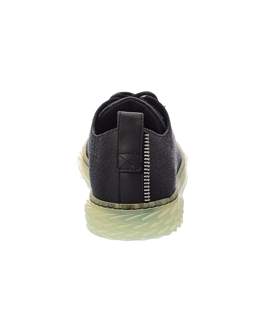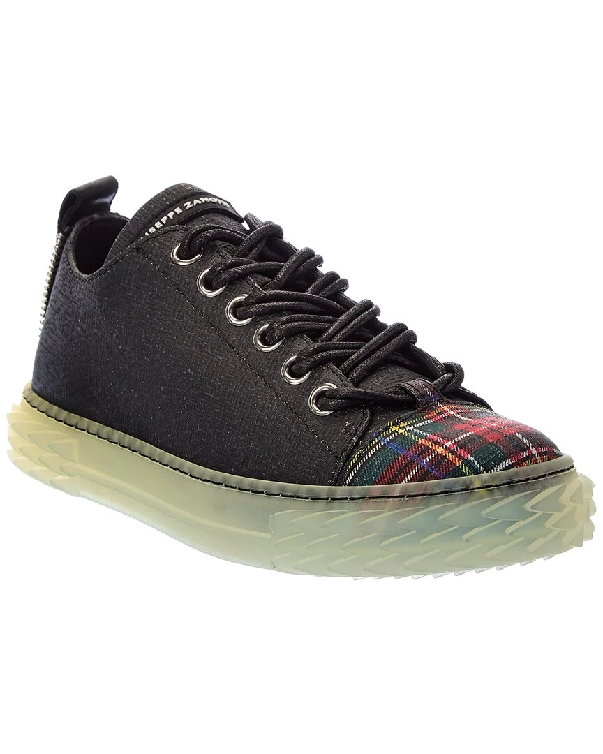 - Blabber Leather Sneaker In Black Leather And Silver-Tone Hardware With Plaid Toe, Zipper Trim And Textured Transparent Sole