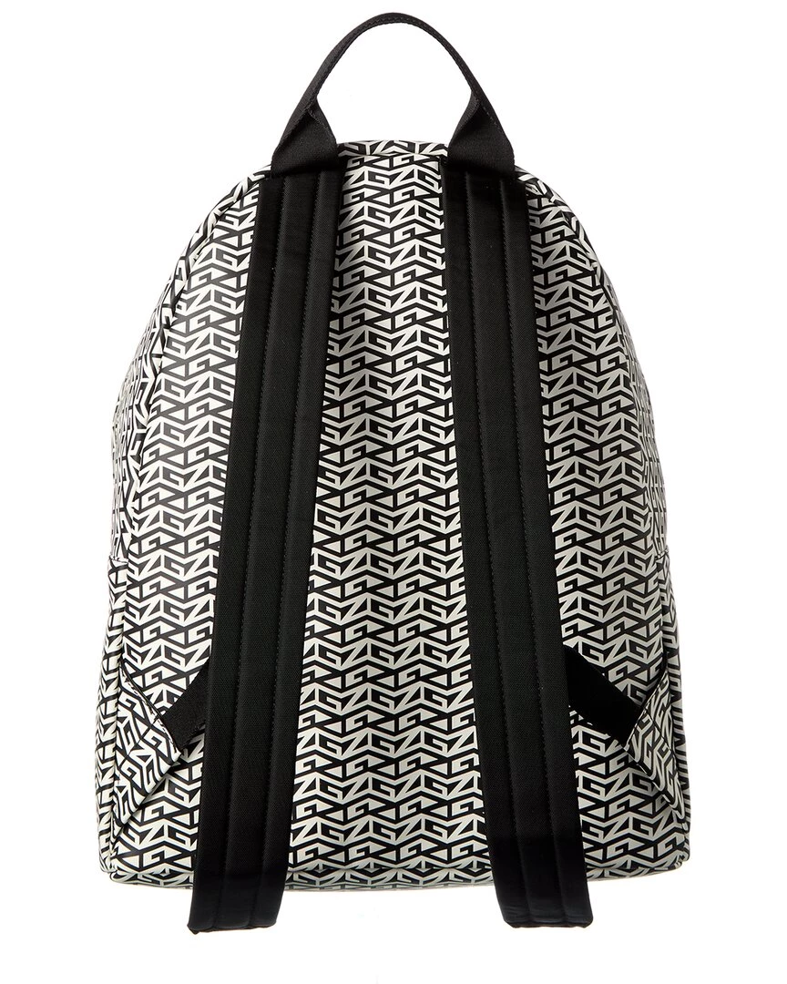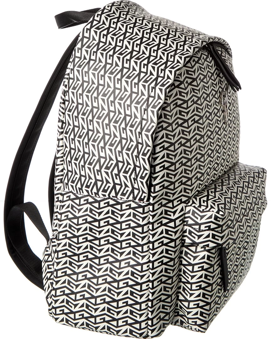- Bud Monogram Leather Backpack In Black And White Leather And Silver-Tone Hardware With Logo Accent And Zippered Pocket