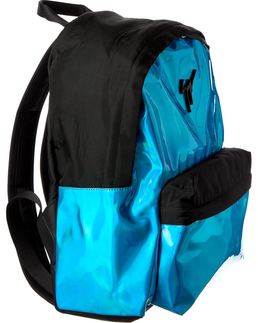- Bud Vinyl Backpack In Light Blue Vinyl And Black Textile And Silver-Tone Hardware With Logo Accent And Zippered Pocket