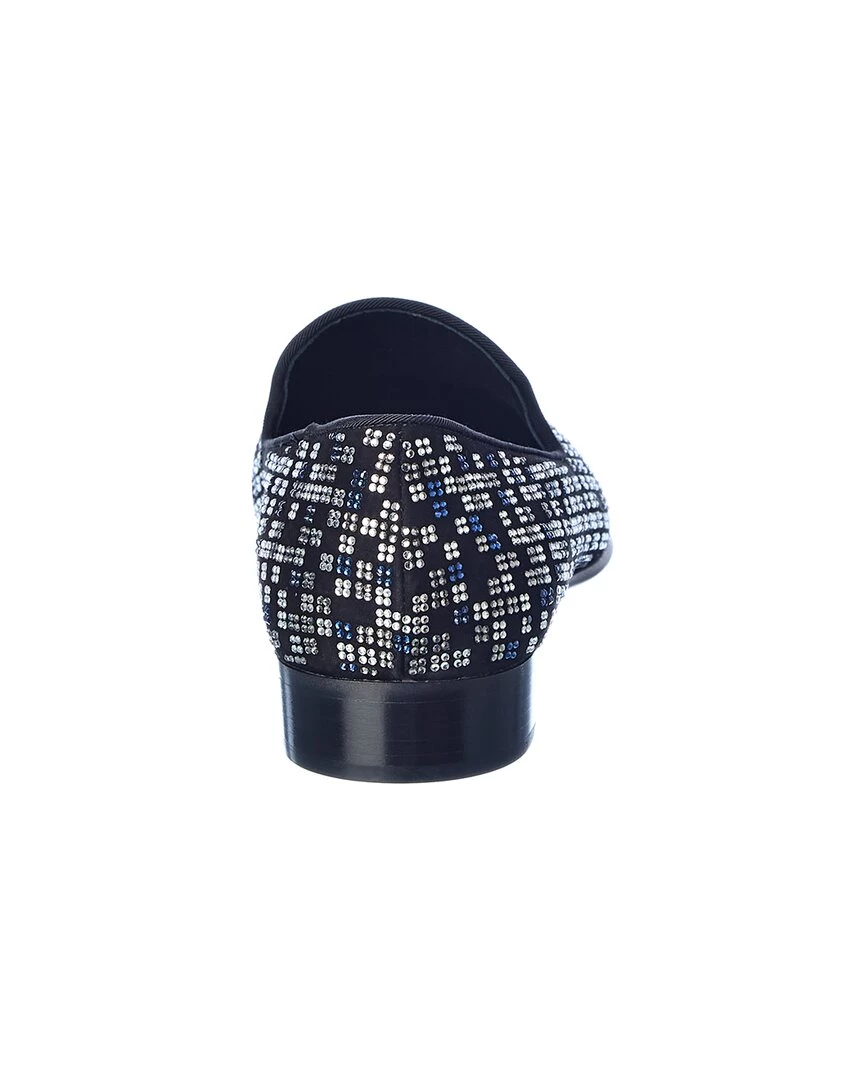 - Cut Suede Loafer In Black Suede With Crystal Embellishments And Grosgrain Trim