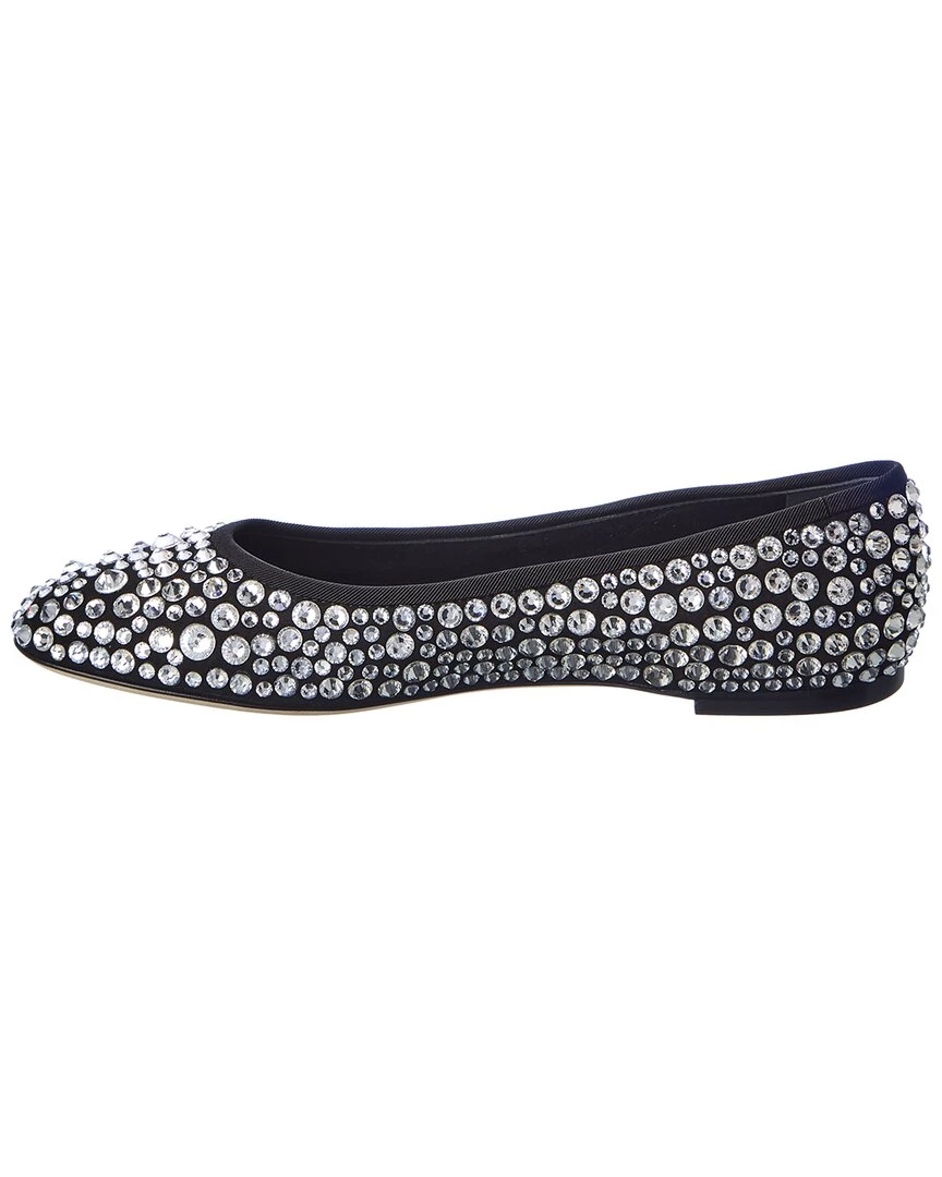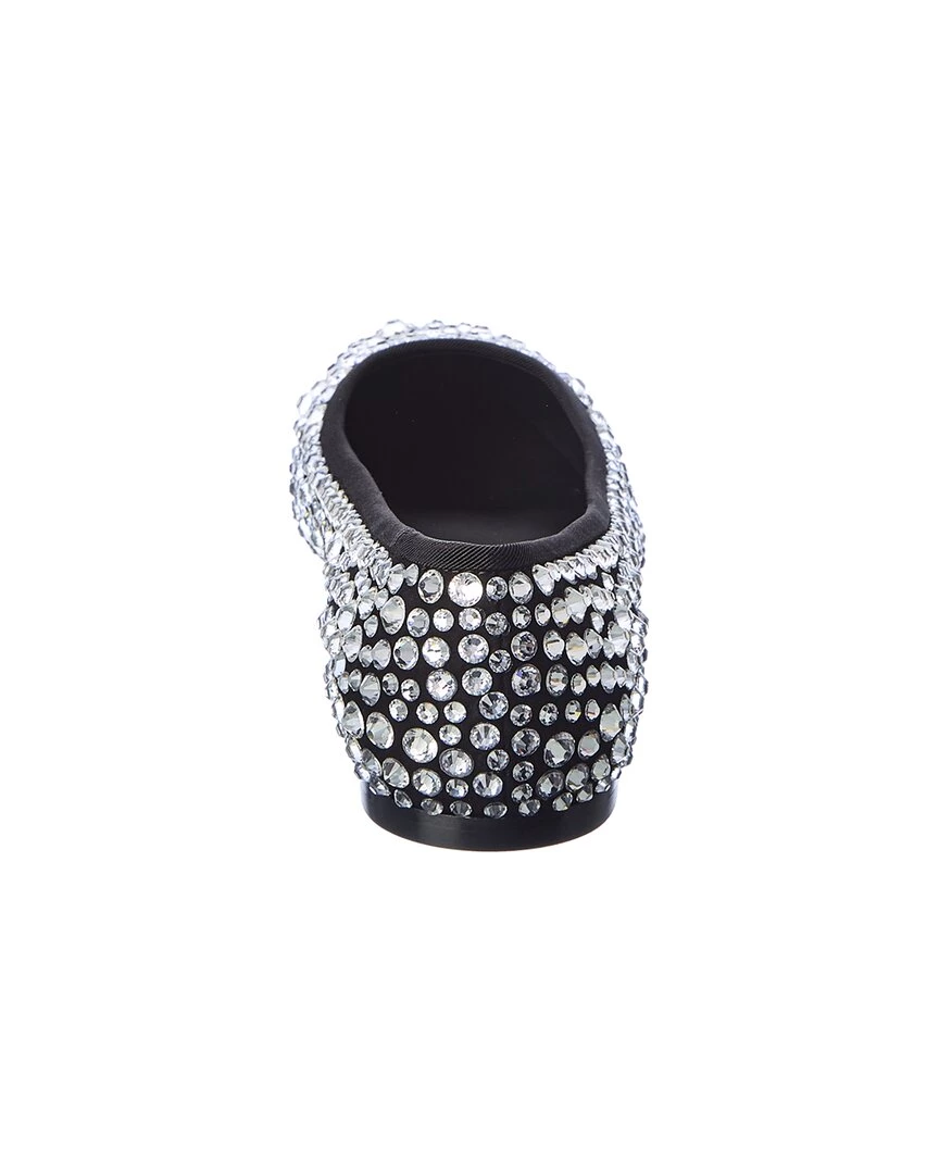 - Flavia Suede Flat In Black Suede With Crystal Embellishments And Grosgrain Trim