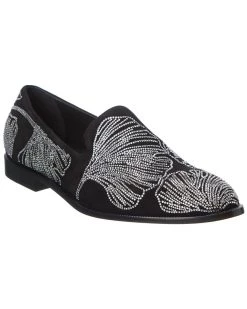 - Flavio Suede Loafer In Black Suede With Crystal Embellishments
