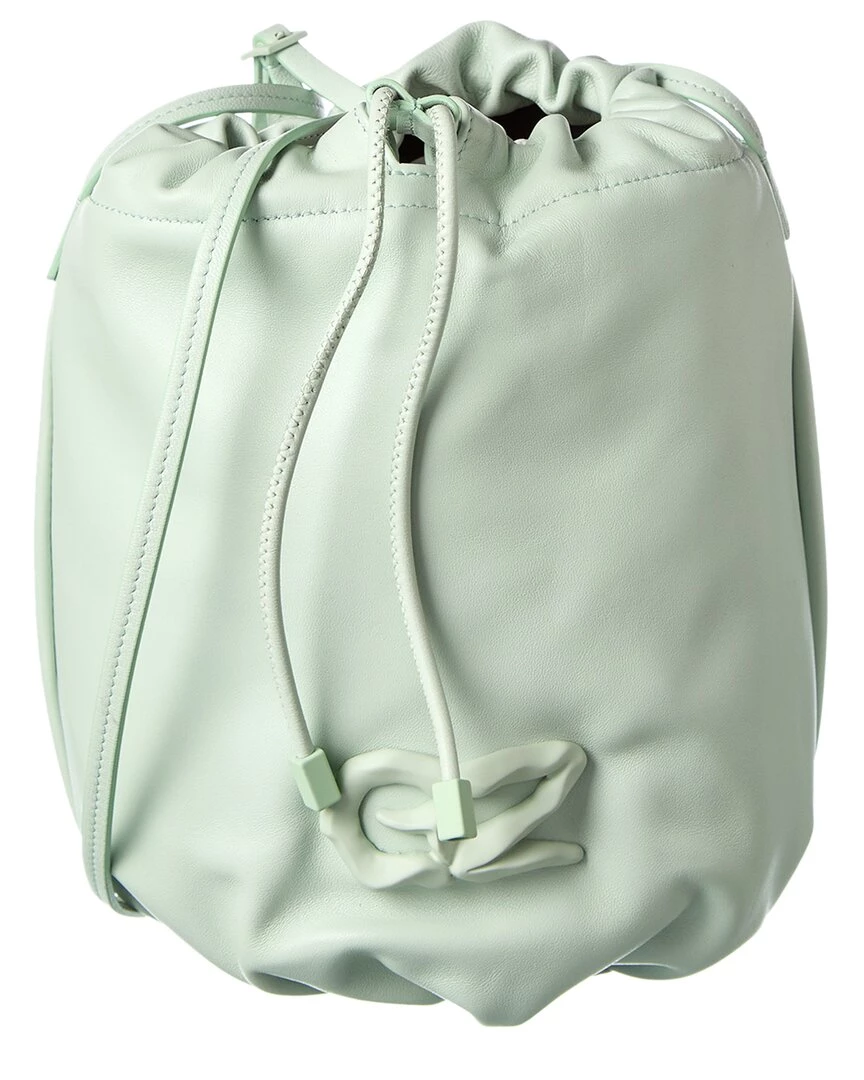 - Izar Leather Bucket Bag In Mint Leather And Tonal Hardware With Logo Accent