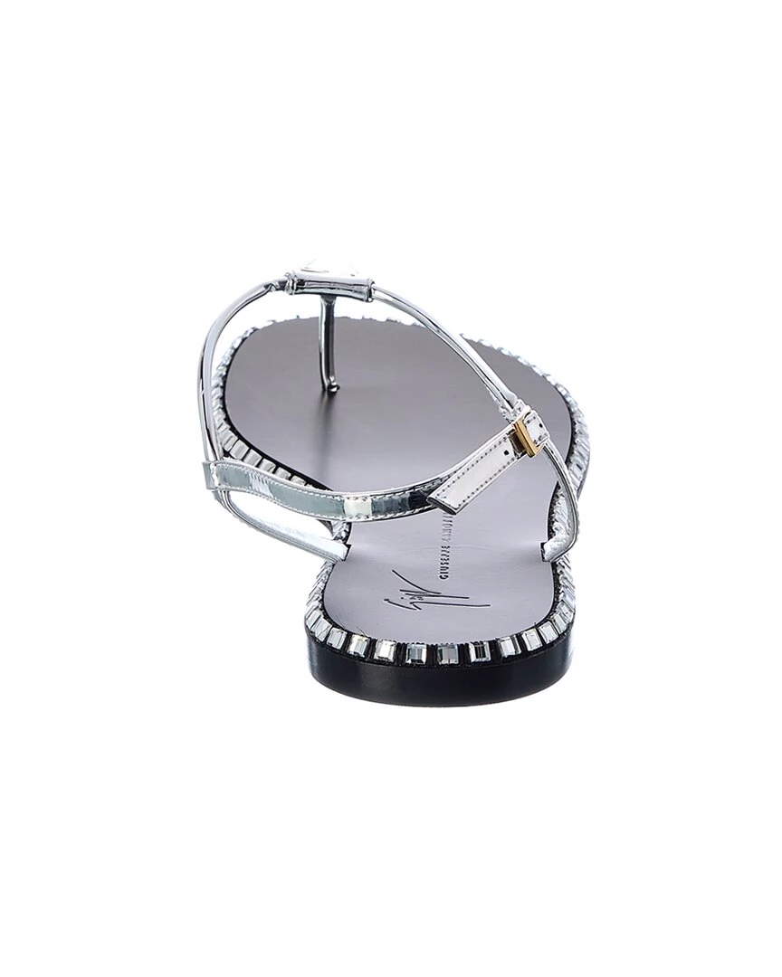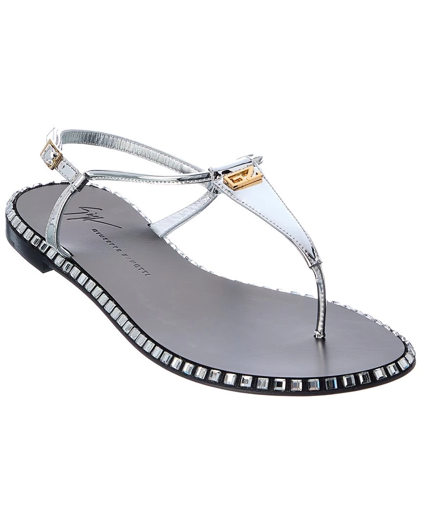 - Joni Sandal In Silver Faux Leather And Gold-Tone Hardware With Logo Accent And Crystal-Embellished Trim