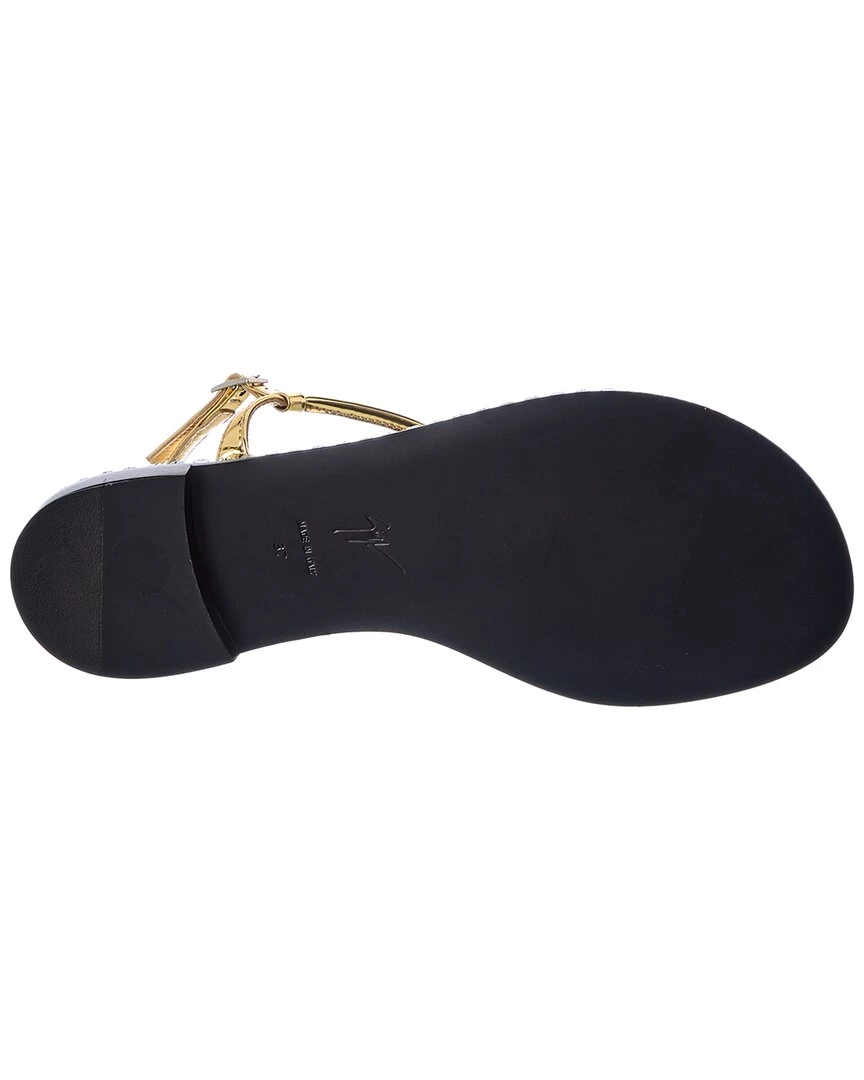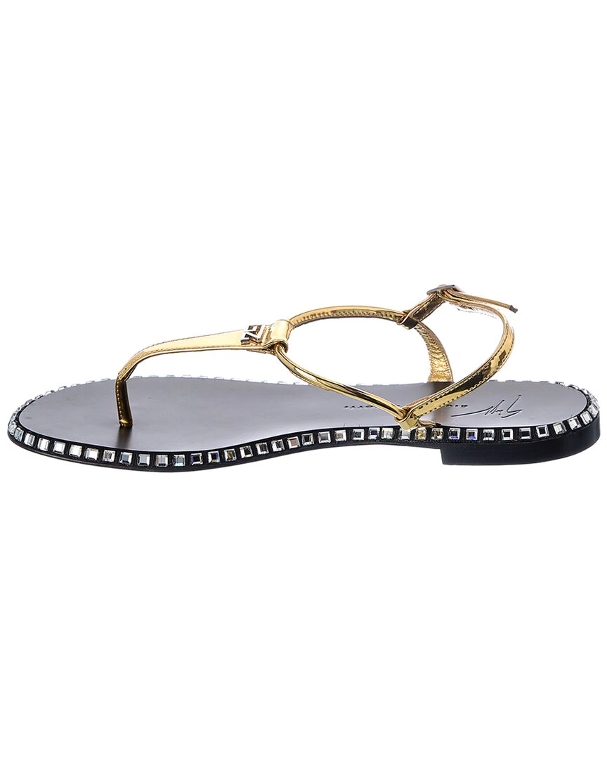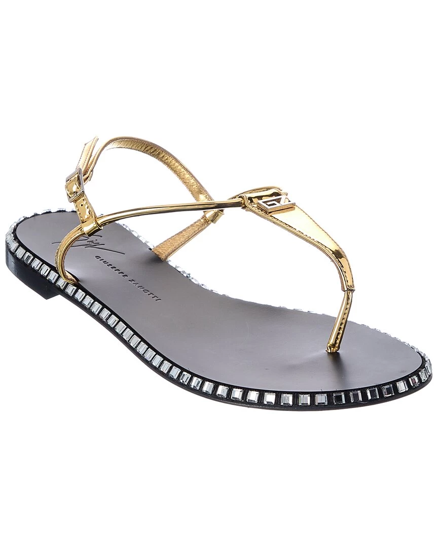 - Joni Sandal In Gold Faux Leather And Silver-Tone Hardware With Logo Accent And Crystal-Embellished Trim