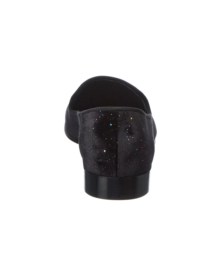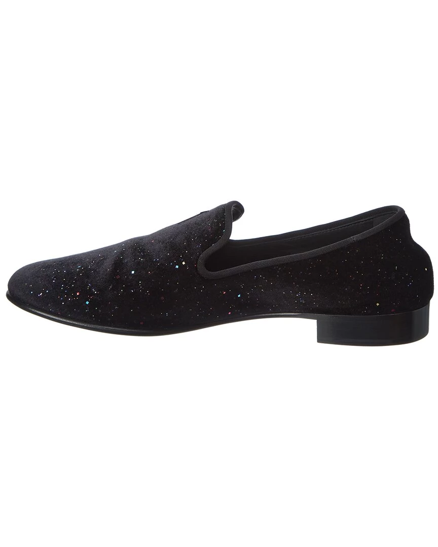 - Kevin Velvet Loafer In Black Velvet With Glitter Detailing, Logo Accent And Grosgrain Trim