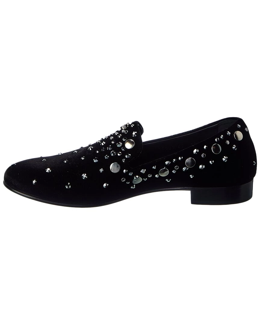 - Kevin Velvet Loafer In Black Velvet And Silver-Tone Hardware With Stud And Crystal Embellishments