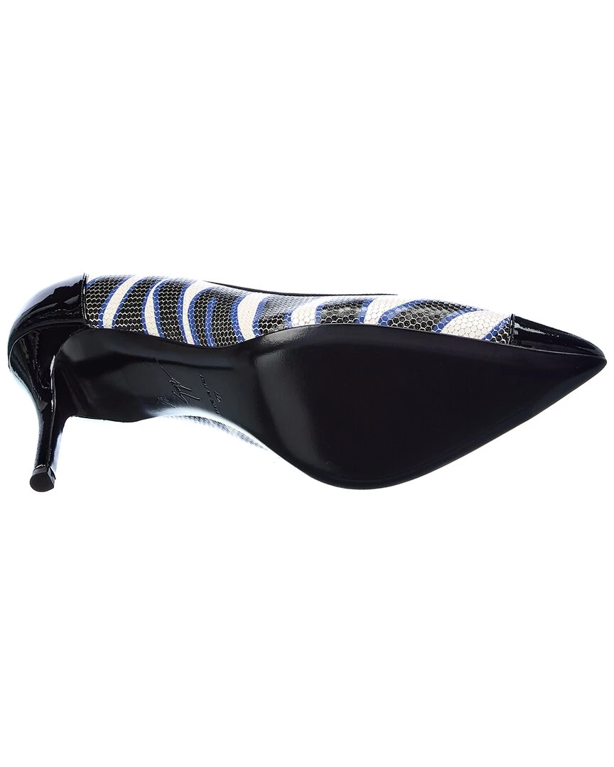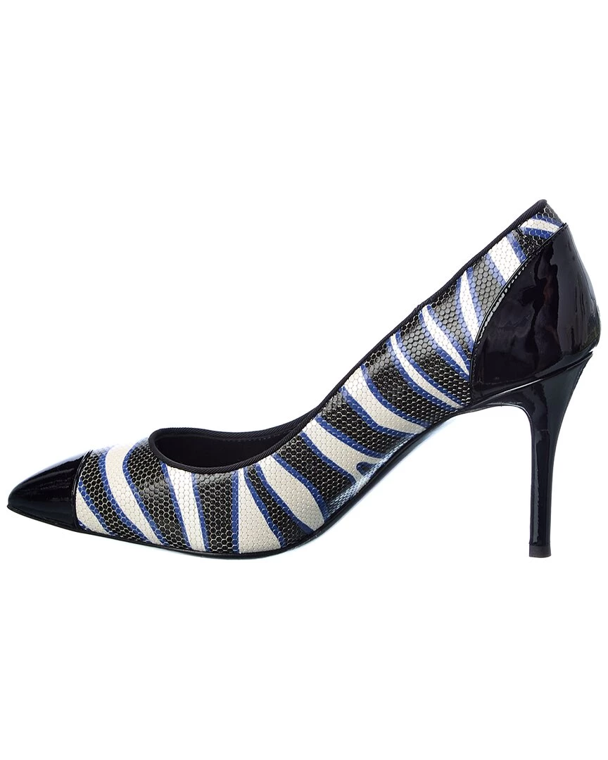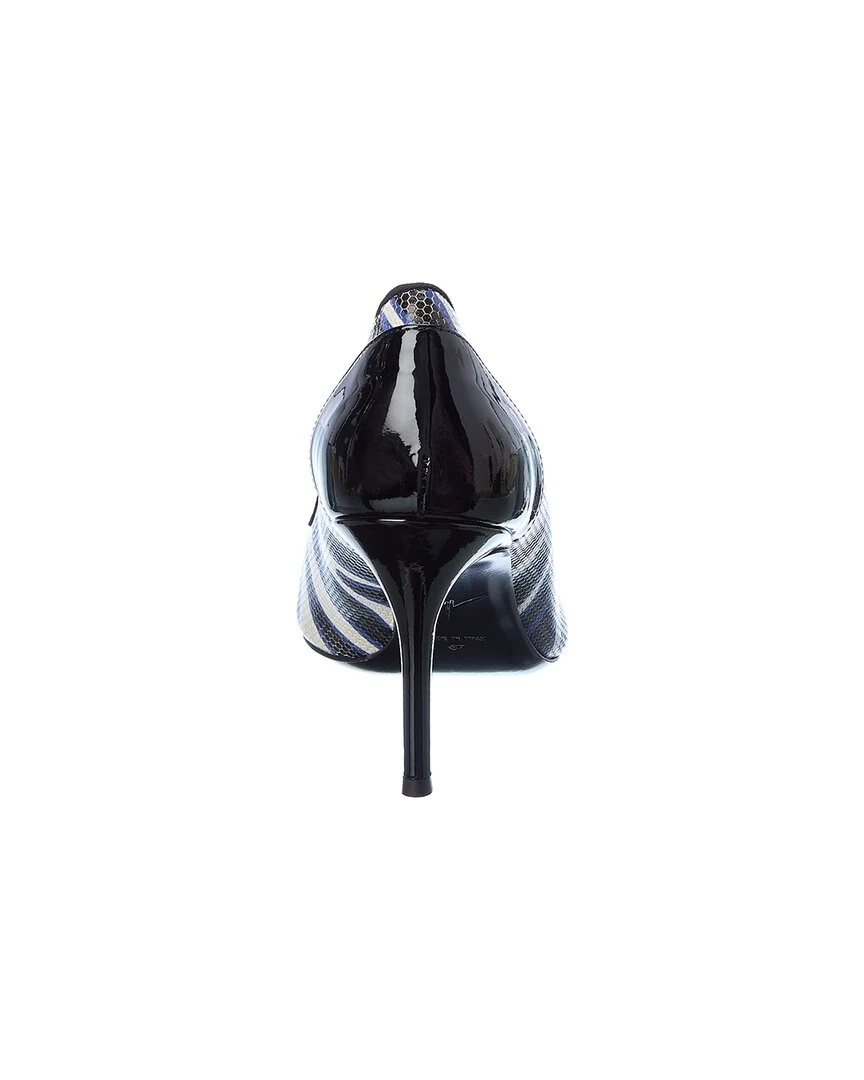 - Lucrezia 90 Leather Pump In Black, White And Blue Leather With Pointy-Toe