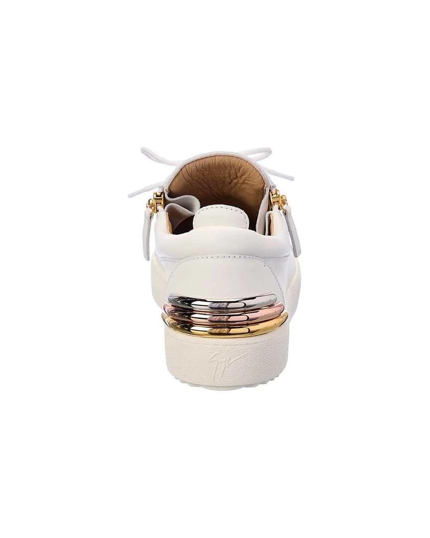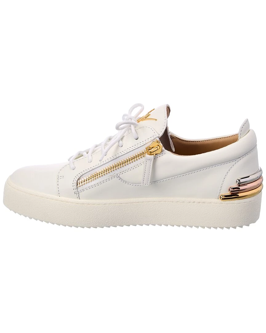 - May London Leather Sneaker In White Leather And Gold-Tone Hardware With Logo Detail And Zipper Accents