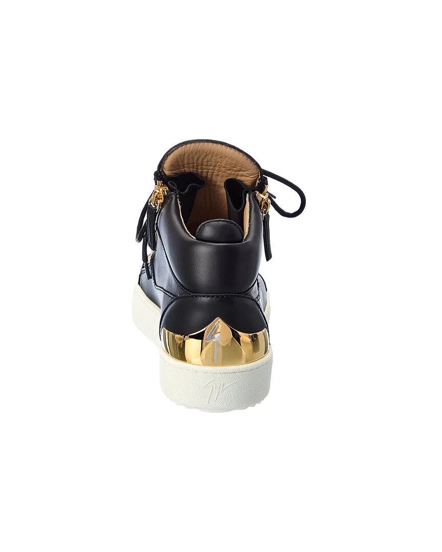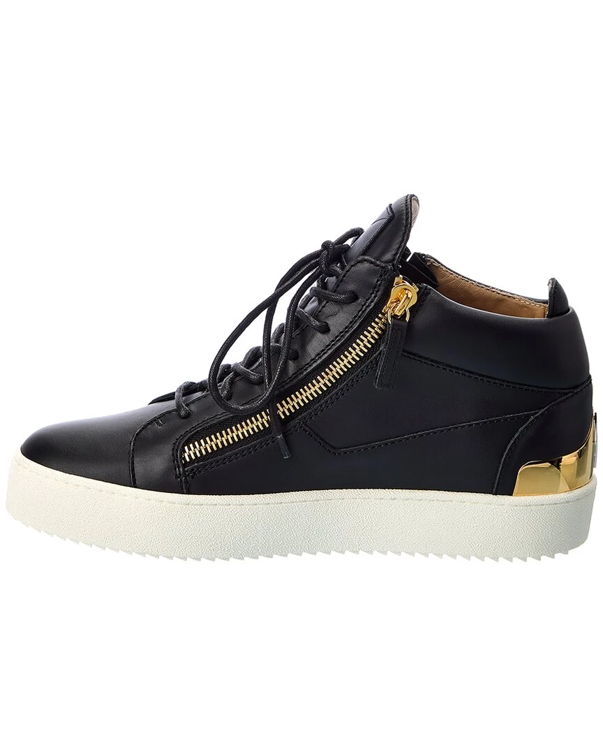 - May London Leather Sneaker In Black Leather And Gold-Tone Hardware With Zipper Accents