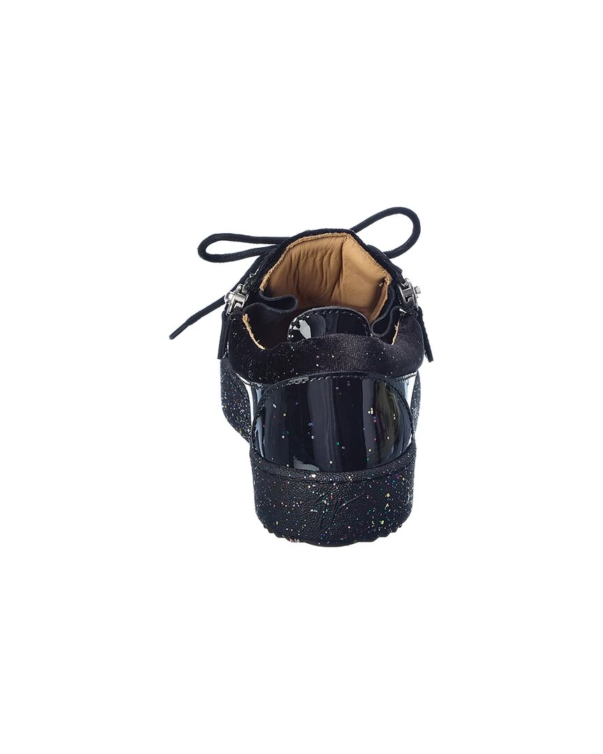 - May London Velvet & Patent Sneaker In Black Velvet And Patent Leather And Silver-Tone Hardware With Multicolor Sequin Embellishments And Zipper Trim