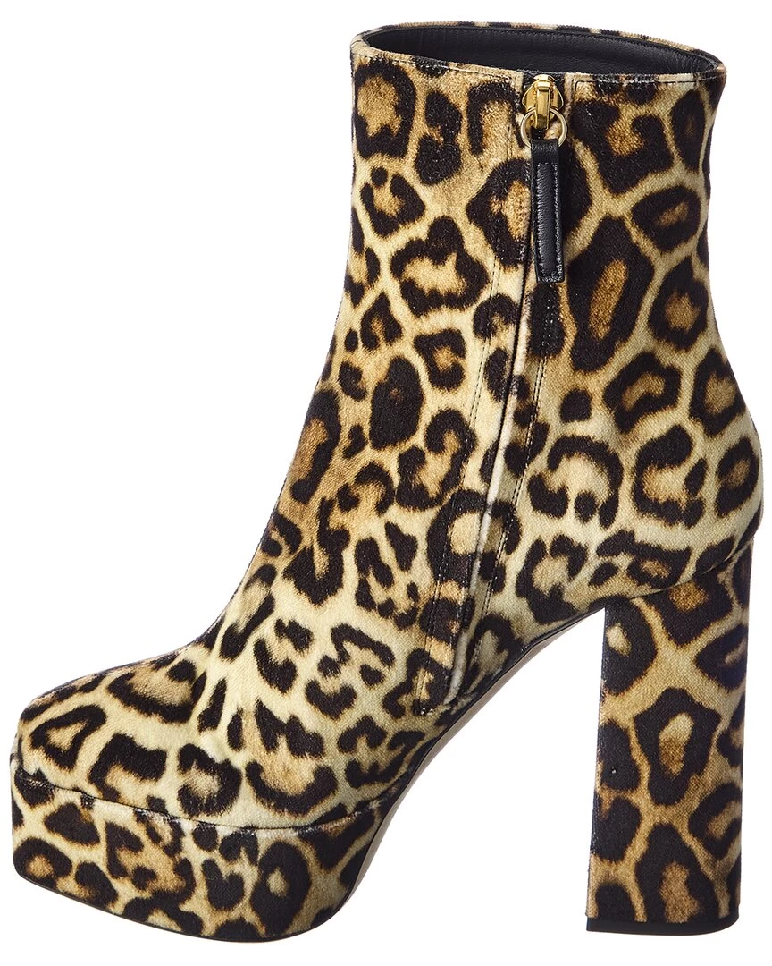 - New York 80 Velvet Platform Bootie In Brown Leopard Velvet And Gold-Tone Hardware With Squared Toe