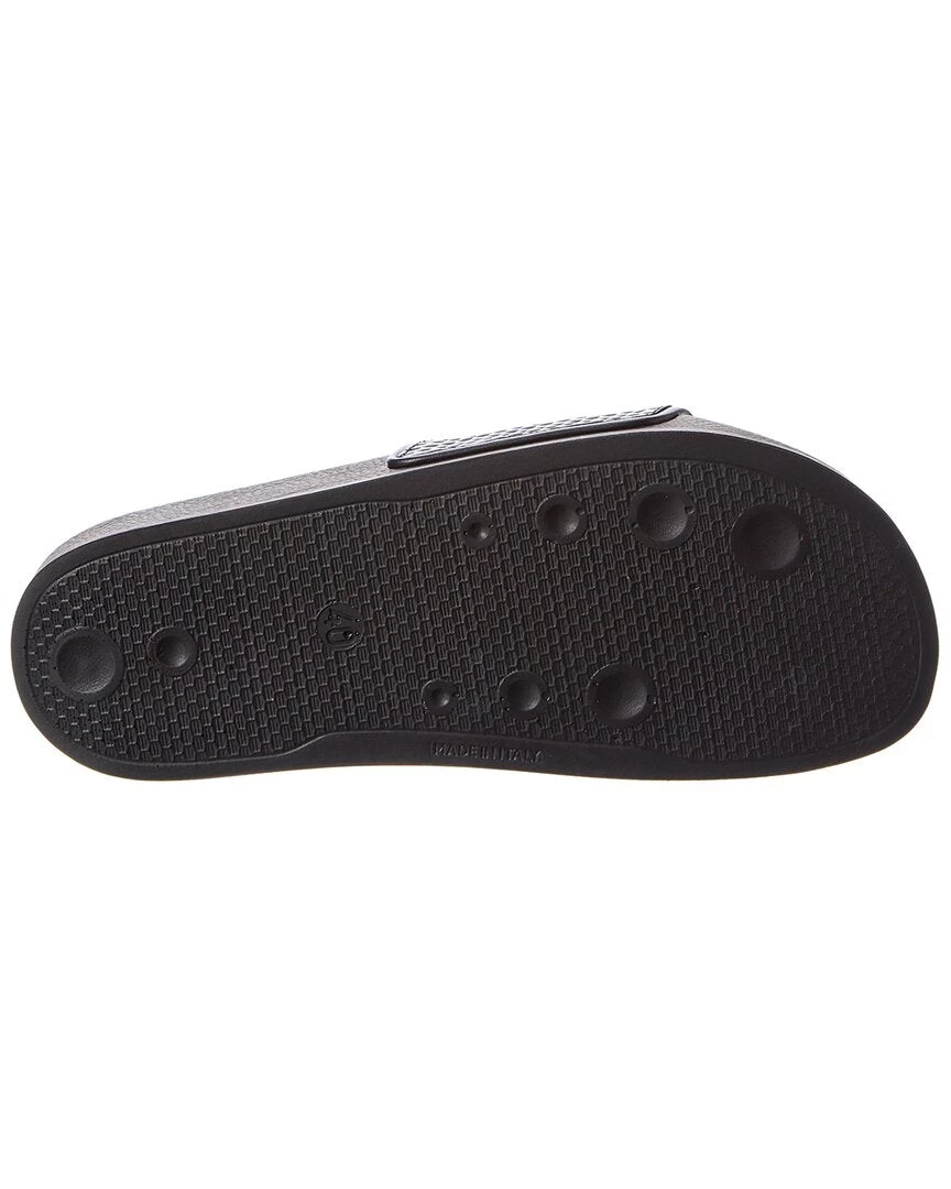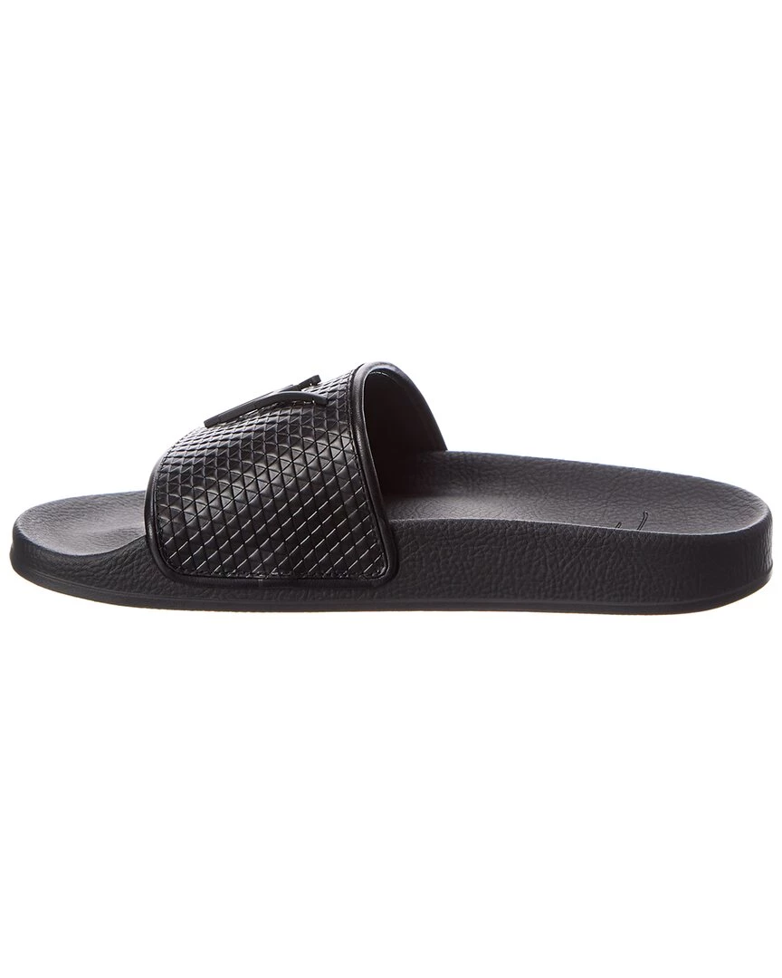 - Newburel Leather Slide In Black Embossed Leather With Logo Accent