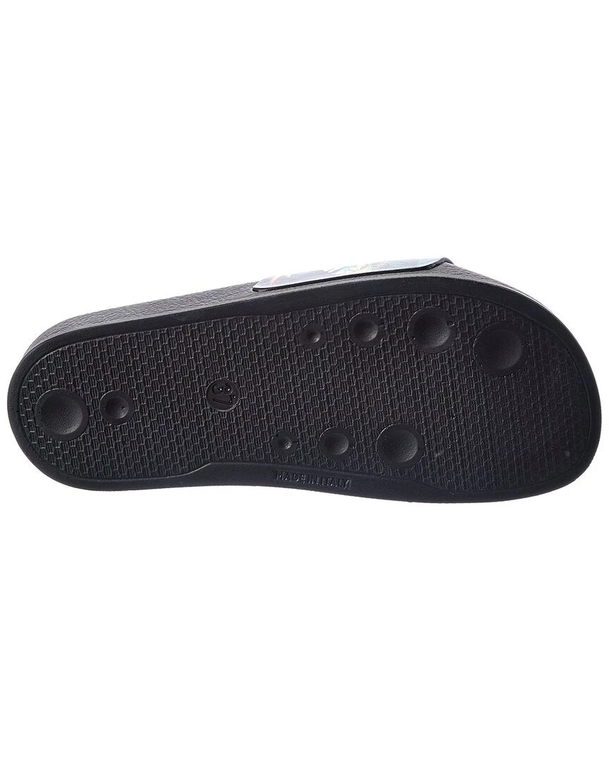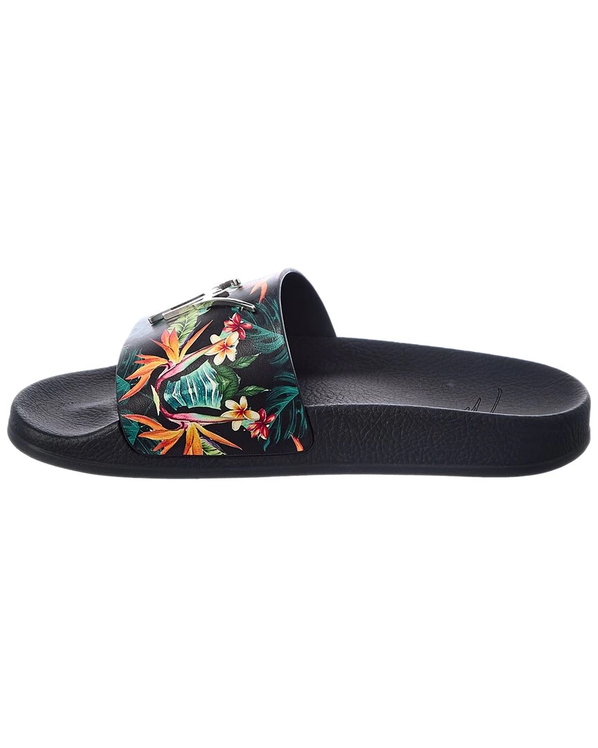 - Newlaburela Leather Slide In Black Printed Leather And Silver-Tone Hardware With Logo Accent