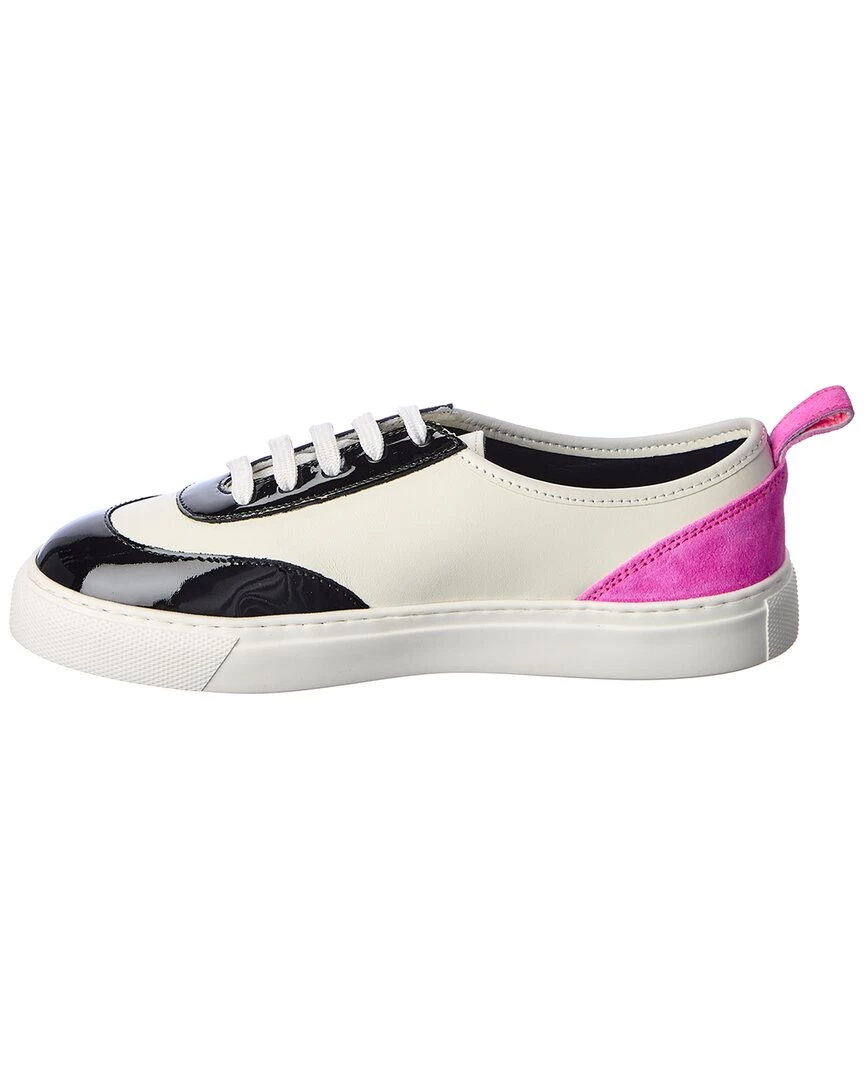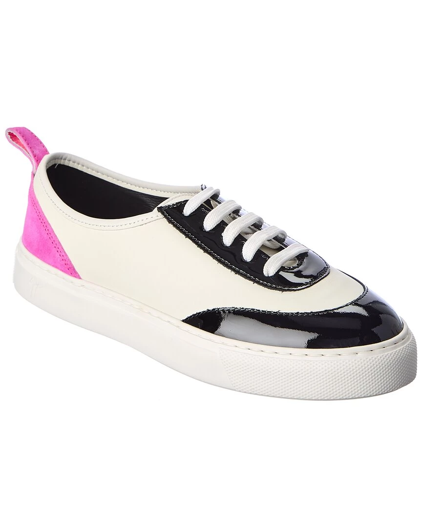 - Olimpic Leather Sneaker In White, Black And Hot Pink Leather And Suede With Pull-On Tab