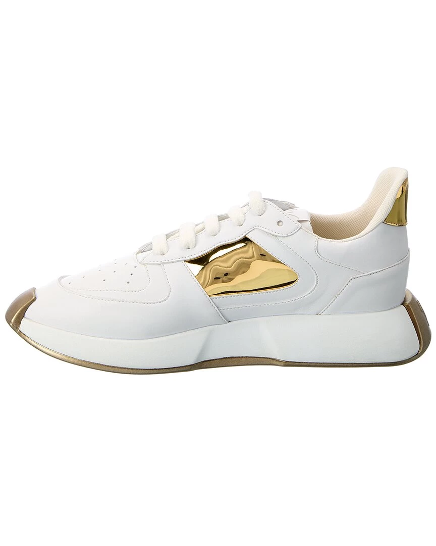 - Omnia Leather Sneaker In White And Gold Leather With Chenille Laces