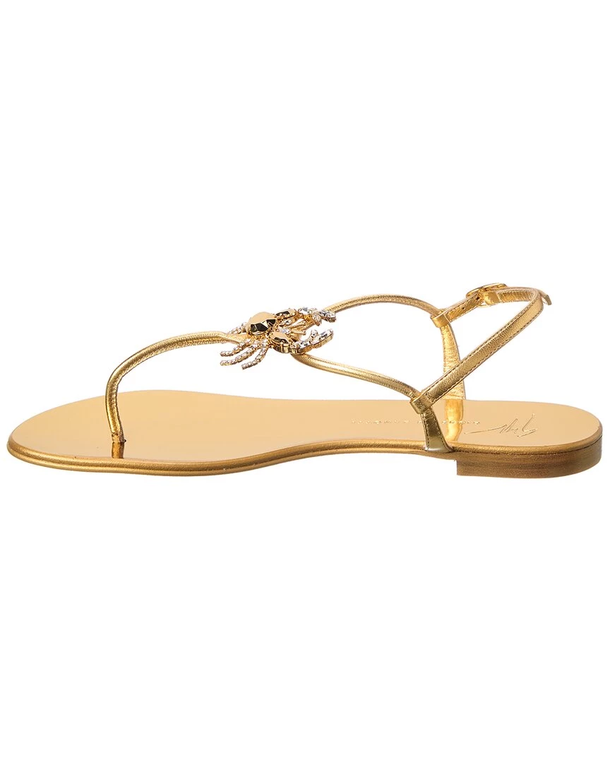 - Rock Leather Sandal In Gold Leather And Gold-Tone Hardware With Crystal-Embellished Crab