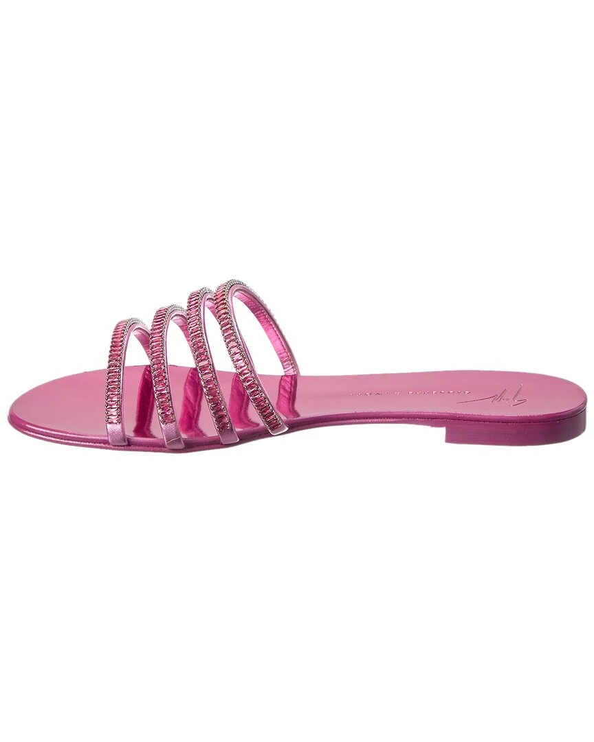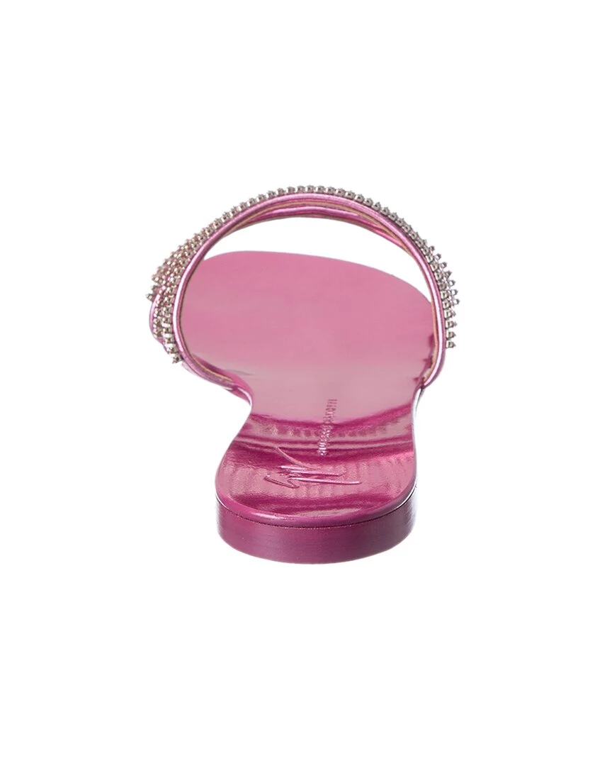 - Roll Leather Sandal In Metallic Pink Leather And Silver-Tone Hardware With Crystal-Embellished Straps