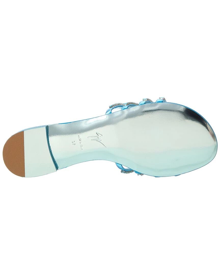 - Roll Leather Sandal In Metallic Blue Leather And Silver-Tone Hardware With Crystal-Embellished Straps