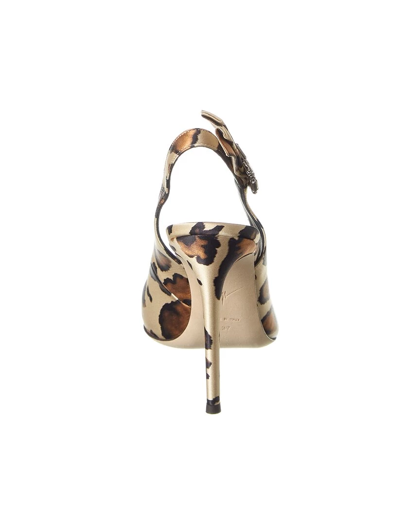 - Satin Slingback Pump In Brown Animal Print Satin And Silver-Tone Hardware With Baguette Buckle Detail
