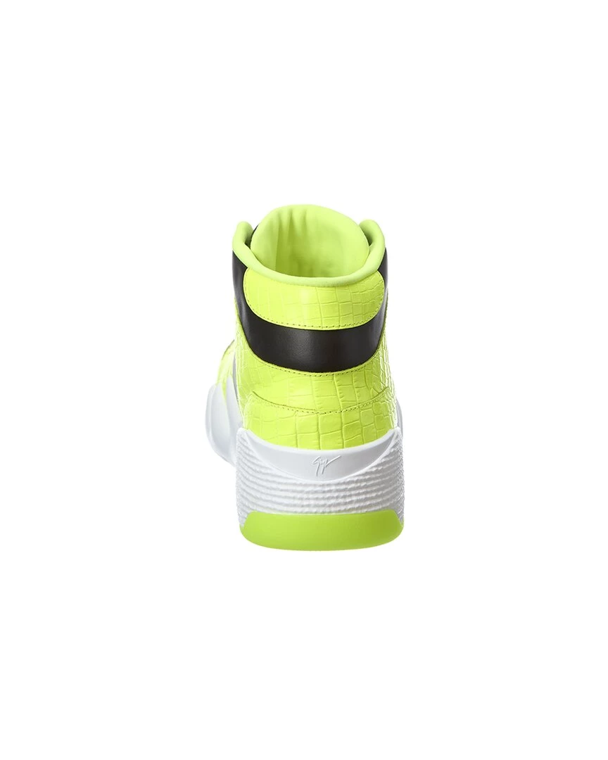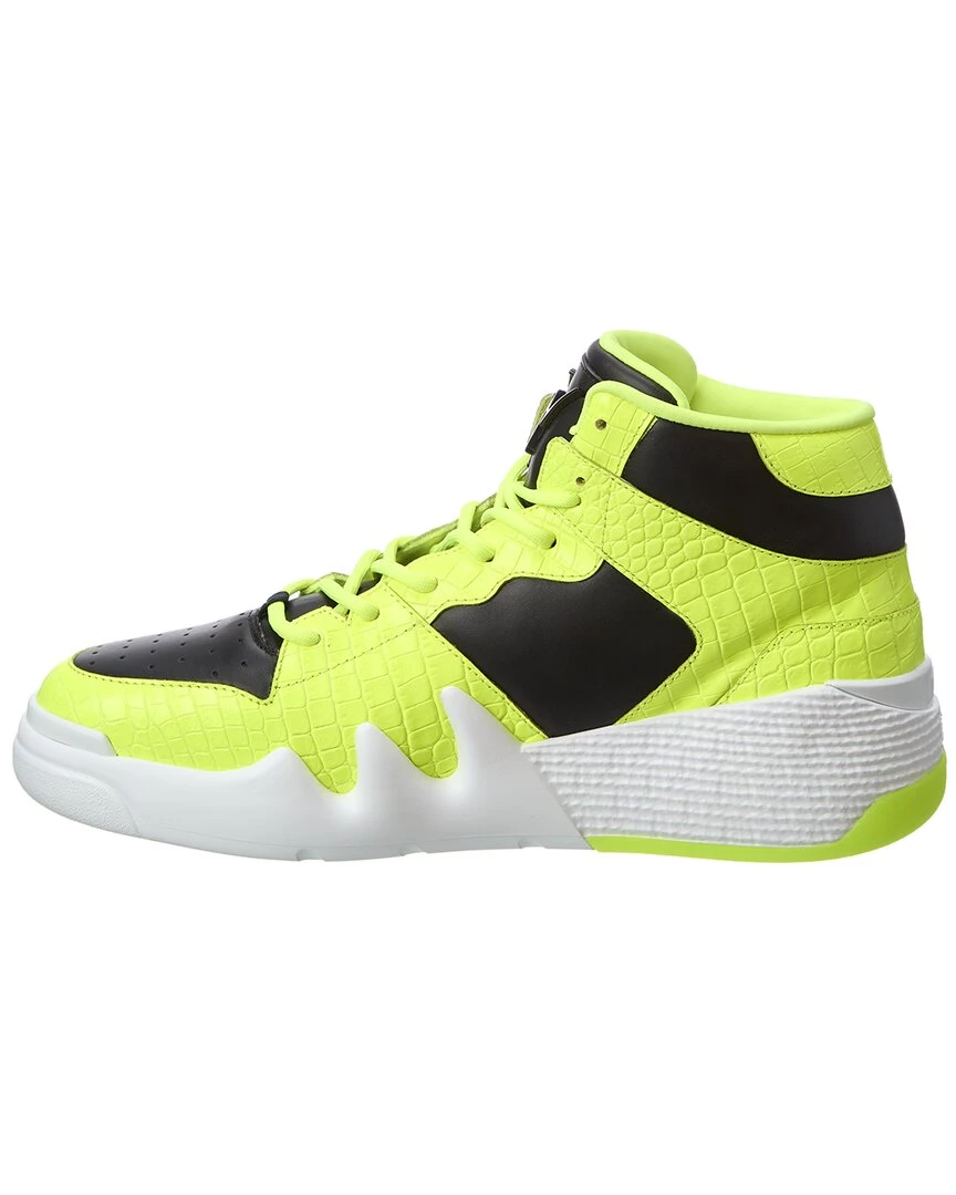 - Talon Croc-Embossed Leather Sneaker In Black And Neon Leather And Croc-Embossed Leather With Logo Accent And Perforated Detailing