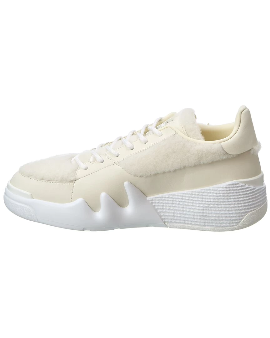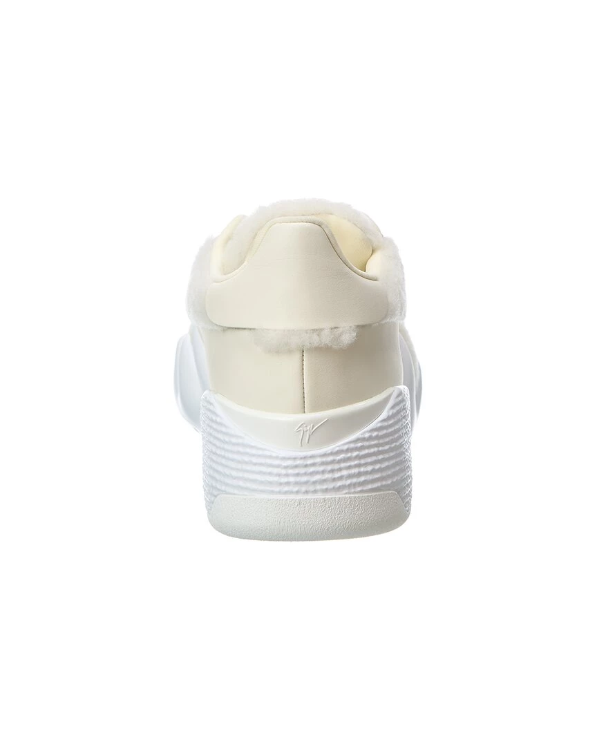 - Talon Leather & Shearling Sneaker In White Leather And Shearling With Logo Accent