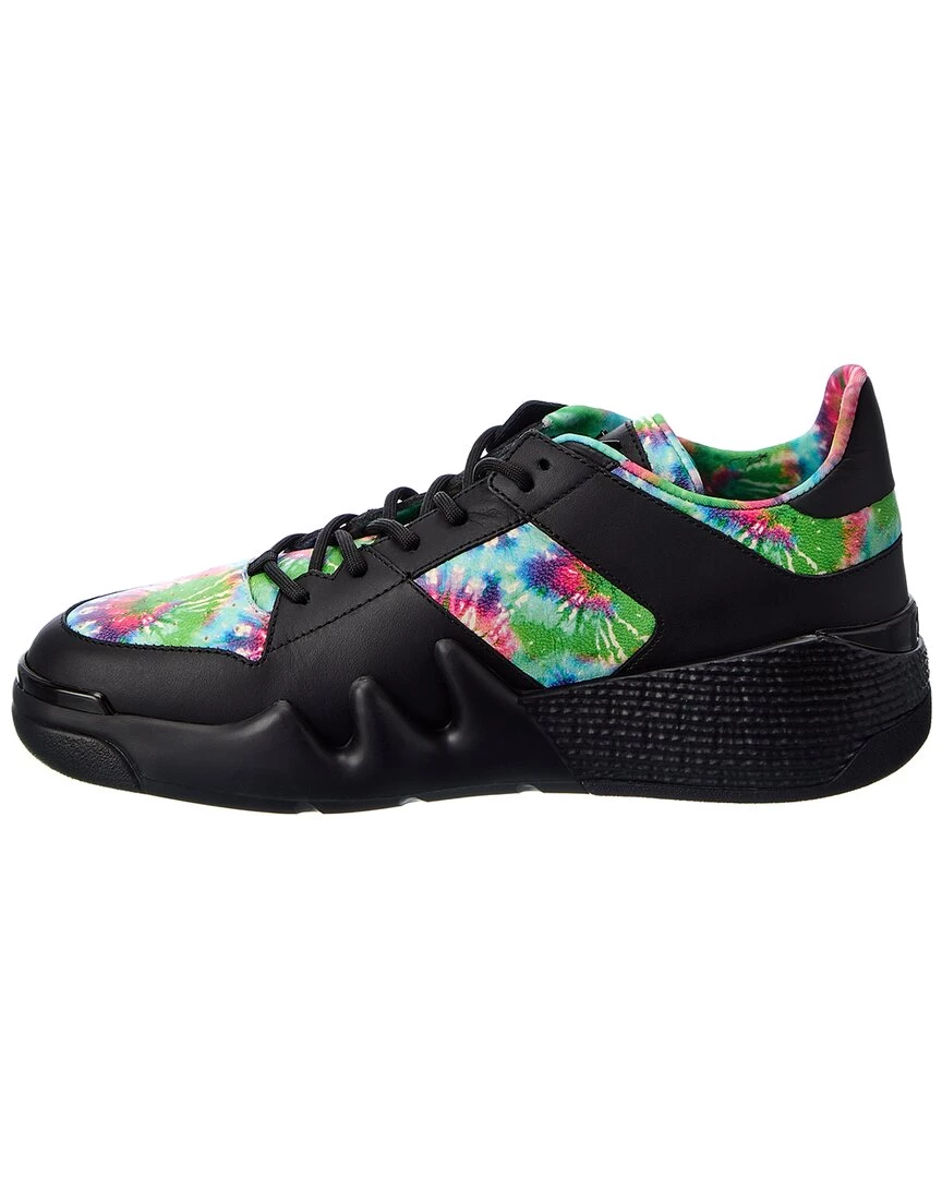 - Talon Leather Sneaker In Black And Tie-Dye Leather With Logo Accent