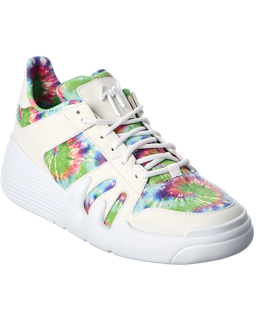 - Talon Leather Sneaker In White And Green Tie-Dye Leather With Logo Accents And Chunky Sole