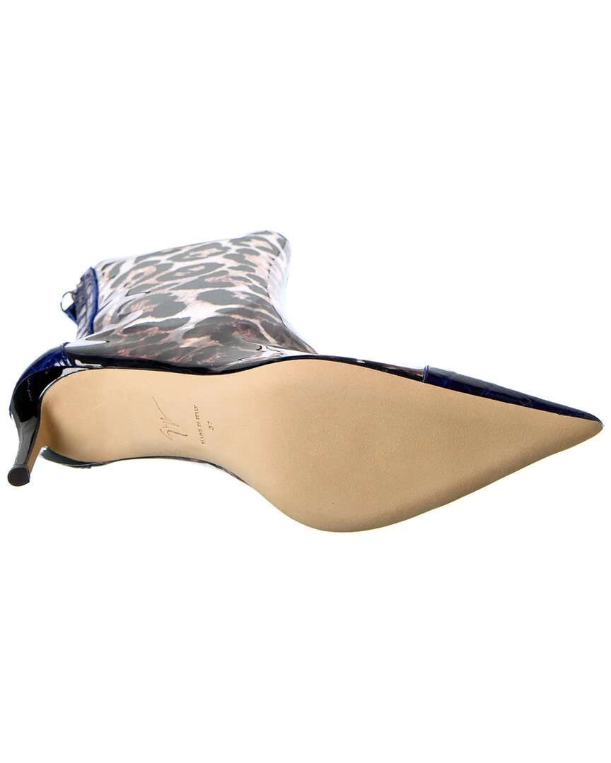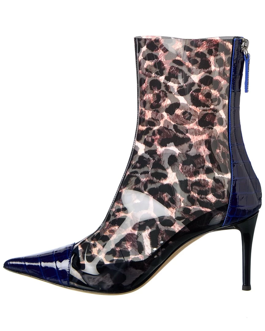 - Violaine Vinyl & Croc-Embossed Leather Bootie In Black Printed Transparent Vinyl And Blue Croc-Embossed Leather And Silver-Tone Hardware With Pointy-Toe