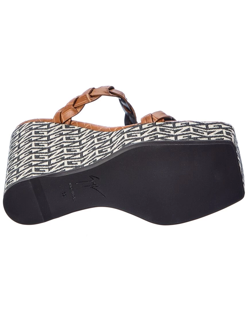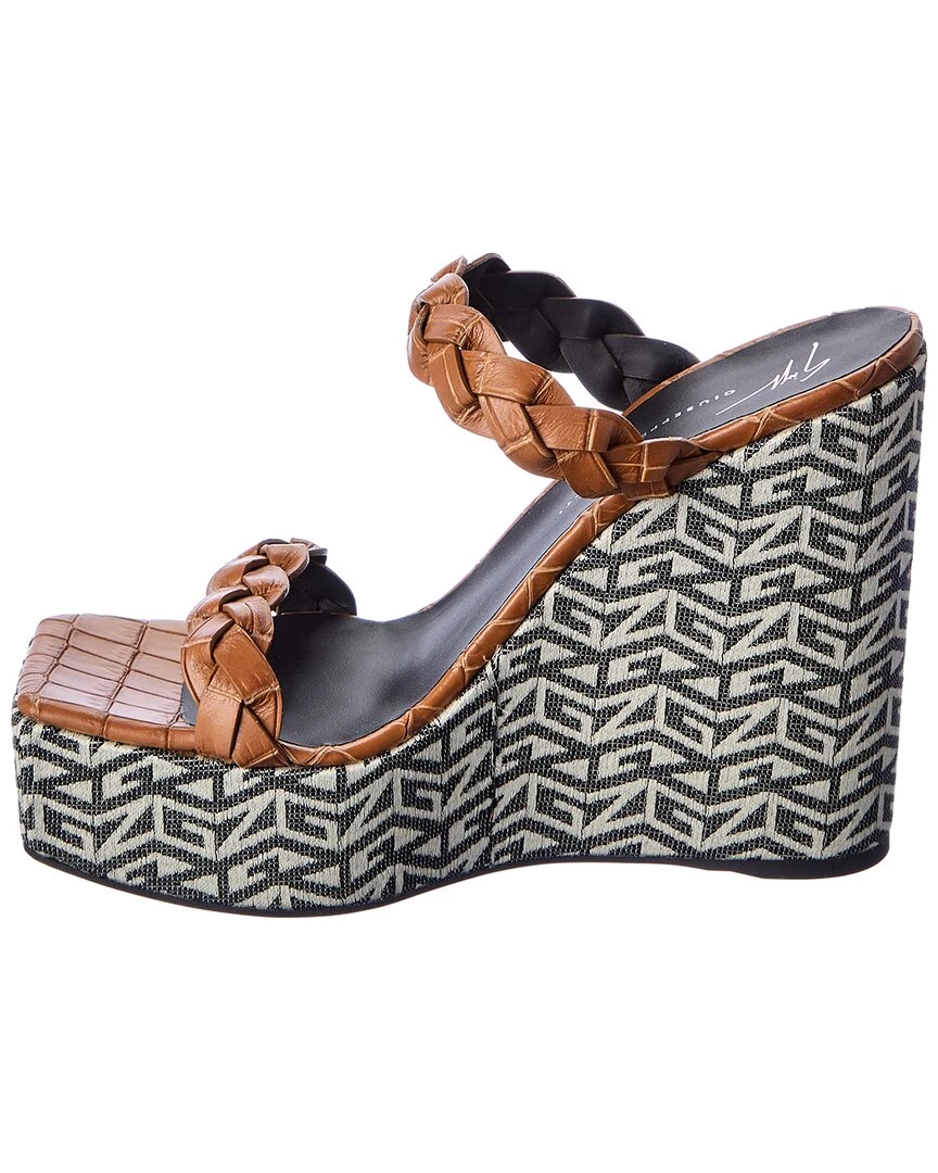- Zanilla 90 Croc-Embossed Leather Wedge Sandal In Brown Croc-Embossed Leather With Braided Straps And Logo Canvas Wedge